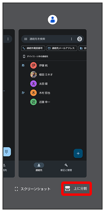 選択したアプリが画面の上下に表示されます(マルチウインドウ画面)。