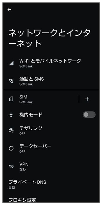 | SIM | がに変更されます。 /が追加されます。複数のSIMが有効な場合に、使用するSIMについて設定します。 が追加されます。本機ではご利用いただけません。 |
