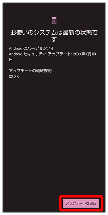 - システムアップデートが進むと最後にが表示されます。タップして、システムアップデートを完了させてください。