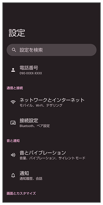 | 壁紙とカスタマイズ | 「壁紙とスタイル」が「壁紙とカスタマイズ」に変更されます。 /タブが削除されます。 が追加され、ロック画面やホーム画面、アイコンなどのデザインを一括で設定できます。 が追加され、アイコンや文字などの色を設定できます。 が追加され、/が移動されます。 がに変更されます。「時計」下部の画面を左右にフリックすると、ロック画面に表示される時計のフォントを変更できます。が削除されます。が追加されます。 がに変更されます。 がに変更されます。 がに変更されます。 がに変更されます。 が削除されます。 そのほかの項目が一部変更されます。 |