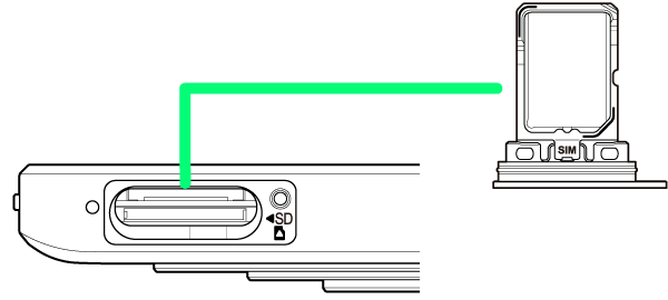 SIMカードトレイ挿入口に、カードトレイを差し込む