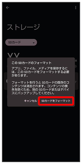 SDカード内のデータがすべて消去されます。