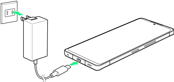 ACアダプタは、防水対応していません。本機または充電器が濡れている状態では、USB Type-Cプラグを絶対に接続しないでください。