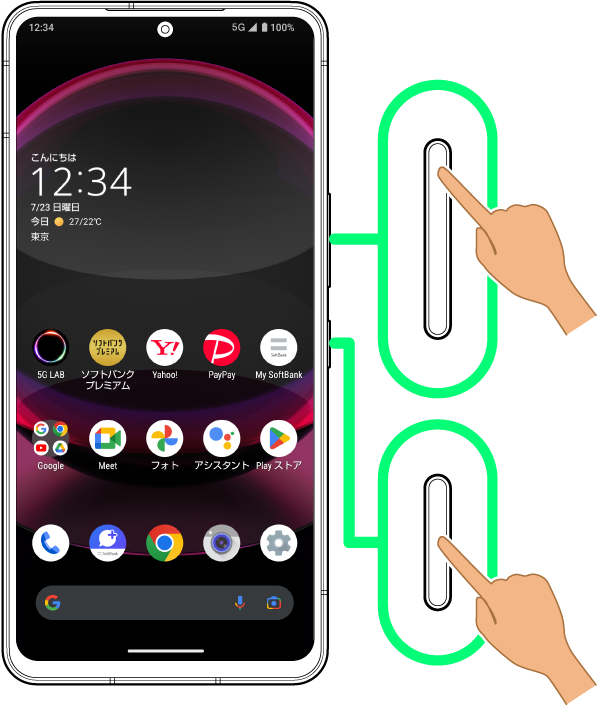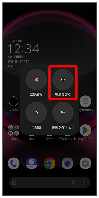 画面ロック解除用のパターン/ロックNo.(PIN)/パスワードを設定している場合や、顔認証機能や指紋認証機能を利用している場合、電源メニューにが表示されます。