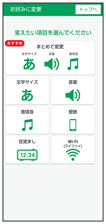 「お好みに変更」からスマホの基本的な設定をかんたんに変更することができます。