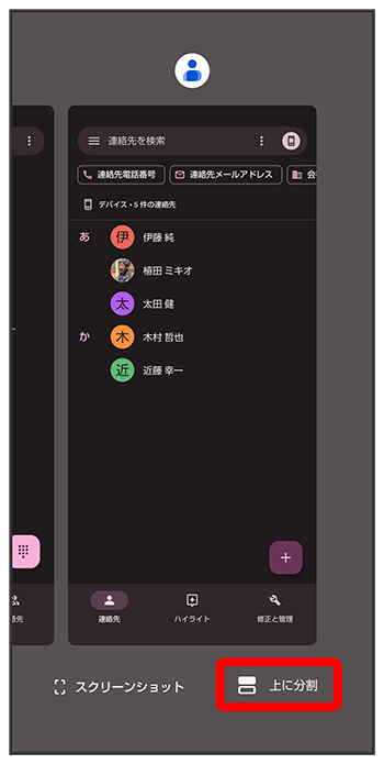 - アプリの使用履歴画面でアプリの履歴のアイコンをタップと操作しても画面を分割できます。