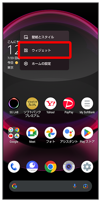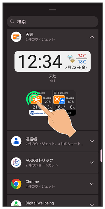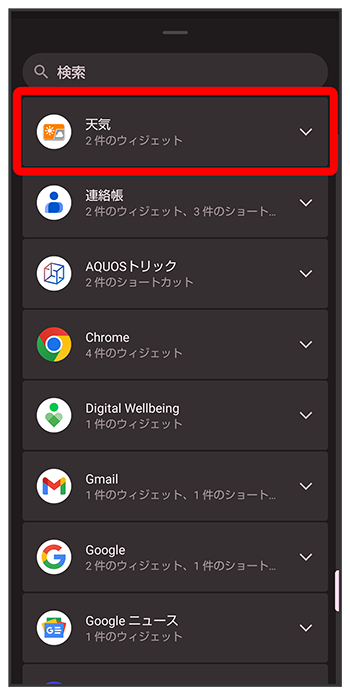 検索バーの下に、おすすめのウィジェットが表示されます。