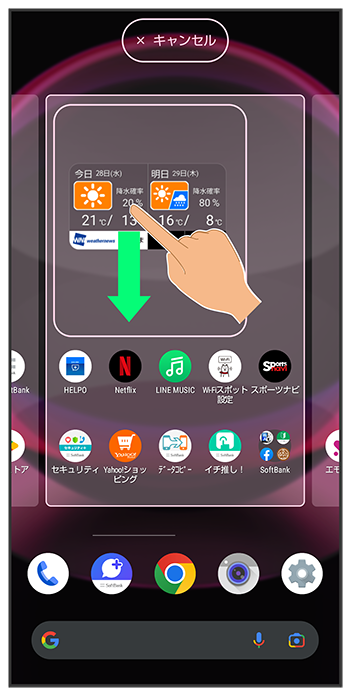 ホーム画面でウィジェットをロングタッチ「削除」までドラッグ