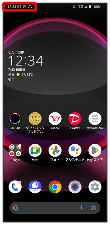 ステータスバーの左側に表示されるアイコンには、次のようなものがあります。