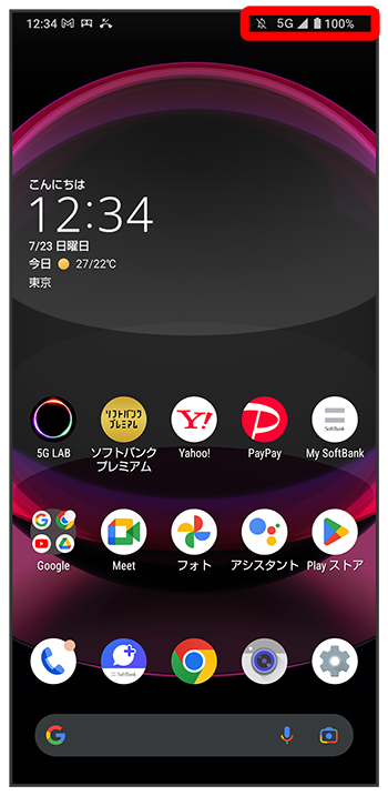 - お使いの端末画面上(画面上部)に待ち受け時は「5G」と表示されている場合でも、通信を行う際は表示が「4G」に切り替わり、4G通信が使用される場合があります。