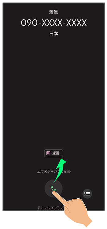 着信中に送信するメッセージをタップ- 画面ロックを解除しているときは、送信するメッセージをタップします。