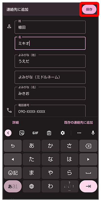 - 追加したい連絡先を入力表示された連絡先をタップと操作すると、既存の連絡先へ追加することができます。