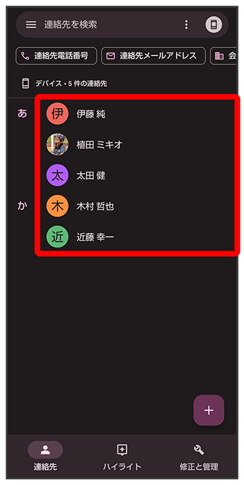連絡先を確認する