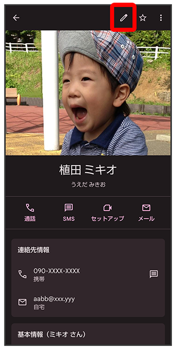 連絡先編集画面が表示されます。