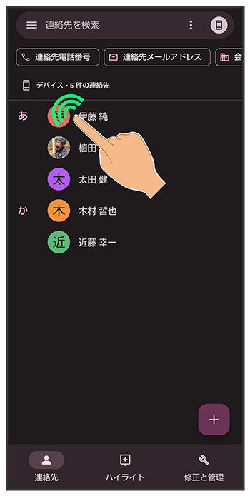 対象の連絡先をロングタッチ(