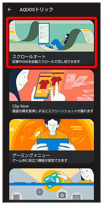 スクロールオート画面が表示されます。