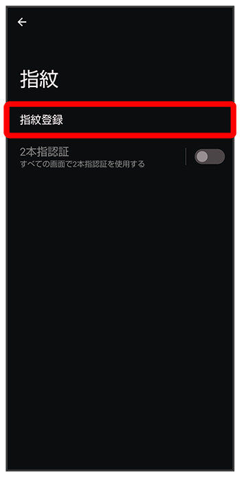 指紋設定画面で「2本指認証」の