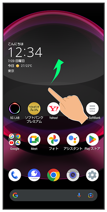 ホーム画面を上にフリック