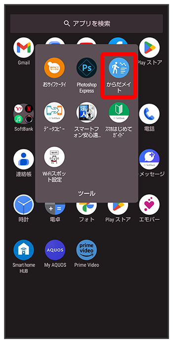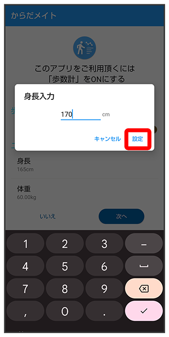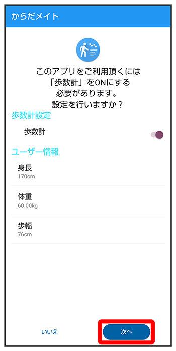からだメイト画面で- 確認画面が表示されたときは、画面に従って操作してください。