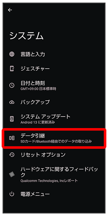 データ引継画面が表示されます。