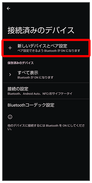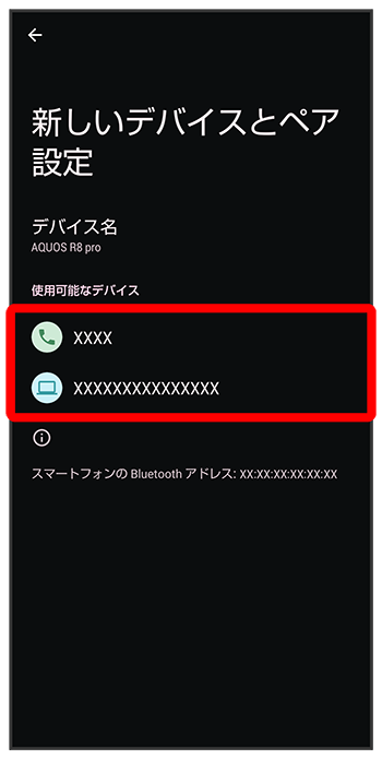 「使用可能なデバイス」欄に近くにあるBluetooth®機器が表示されます。