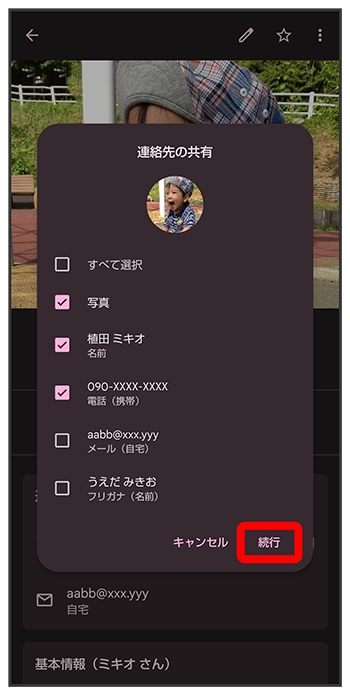 送信する連絡先をタップ
