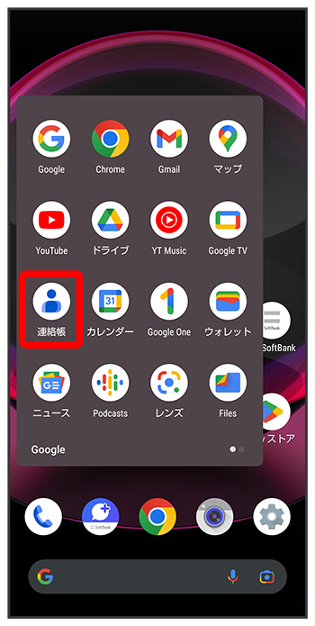 連絡帳画面で連絡先をロングタッチ送信したい連絡先をタップ(