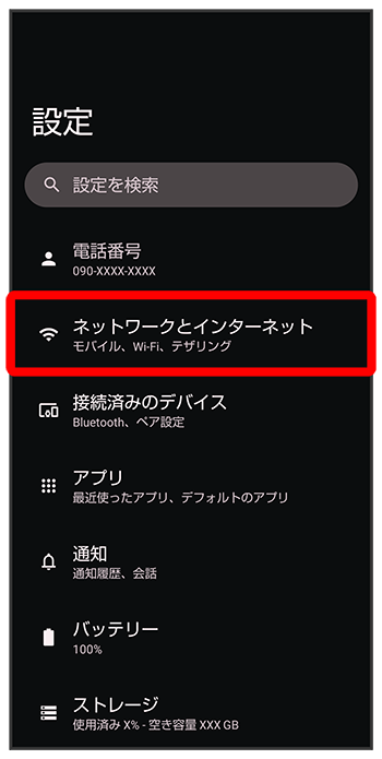 | Wi-Fiテザリング | Wi-Fi接続でテザリング機能を利用するかどうかや、Wi-Fiテザリングを利用するときのネットワーク名やセキュリティ、パスワード、AP周波数帯などについて設定します。 |