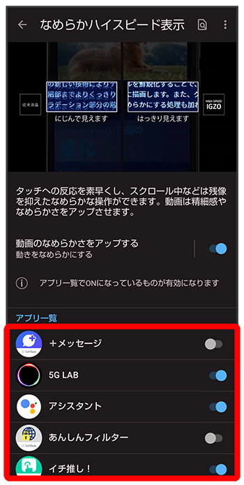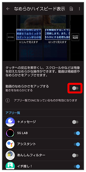 - アプリによっては効果が得られないことがあります。その場合は、設定を無効にしてください。また、電池残量や本体温度によっても、効果が得られない場合があります。