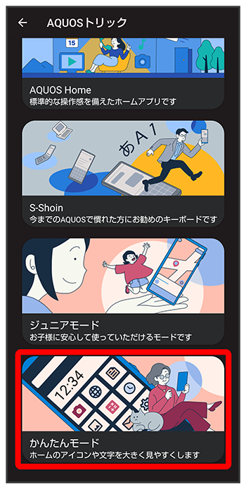 かんたんモード利用時の操作