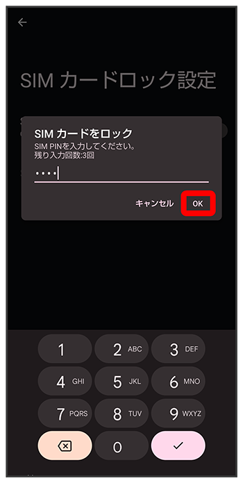 PINコードを操作するときや、SIMカードロック設定時に電源を入れたときは、PINコードの入力が必要になります。