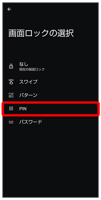 ロックNo.(PIN)で画面ロックを解除するように設定する