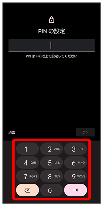 - をタップすると、入力したロックNo.(PIN)を消去できます。