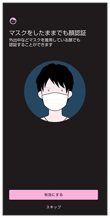画面のガイドに顔を合わせる「マスクをしたままでも顔認証」について設定