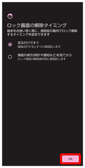 顔データの登録後に画面ロックを解除するタイミングを変更する