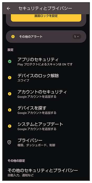 | その他のセキュリティとプライバシー | 、の一部の設定項目がとして追加されます。 がに変更されます。 がに変更され、画面ロック解除方法がまたはのときにも利用できるようになります。 そのほかの項目が一部変更されます。 |