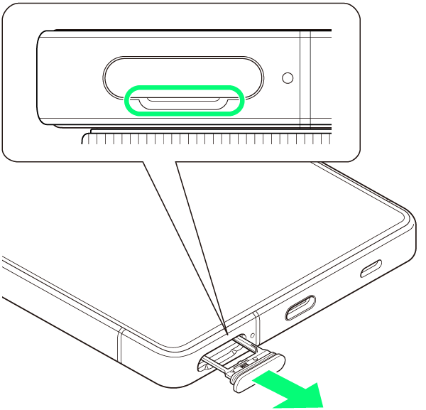 - ディスプレイを下にしたり、本機を立てた状態でカードトレイを引き出すと、SIMカードがカードトレイから外れ、紛失する可能性があります。