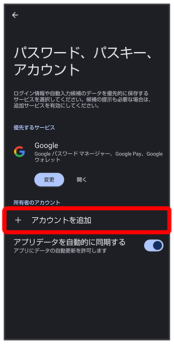 Google アカウントのログイン画面が表示されます。