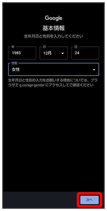 生年月日と性別を設定/入力
