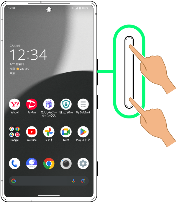音量Upキー/音量Downキーを押す