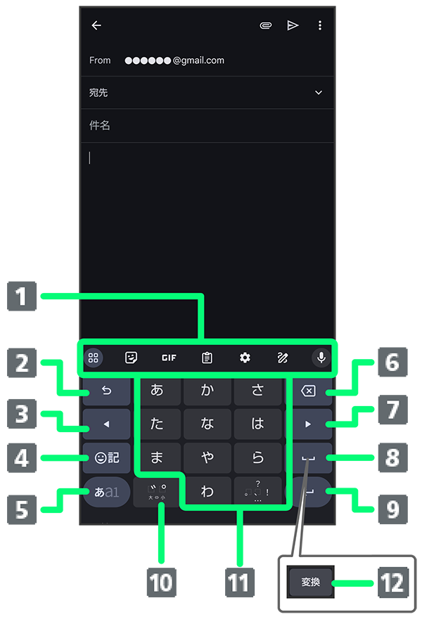 - 表示するアイテムを変更することもできます。詳しくは、「ツールバーについて(Gboard)」を参照してください。