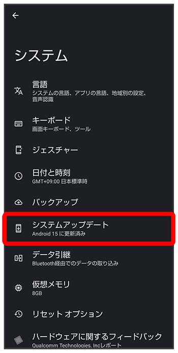 システムアップデートが必要なときは、通知が表示されます。通知をタップし、画面に従って操作してください。通知が表示されない場合などは、次の手順で必要かどうかを確認してアップデートできます。