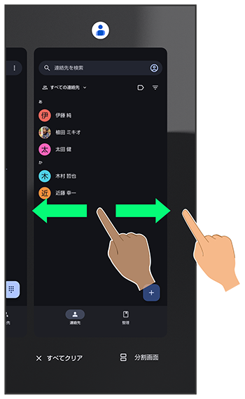 アプリの履歴を左右にドラッグして、次に操作したいアプリの履歴をタップ