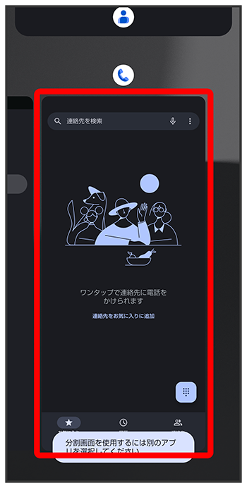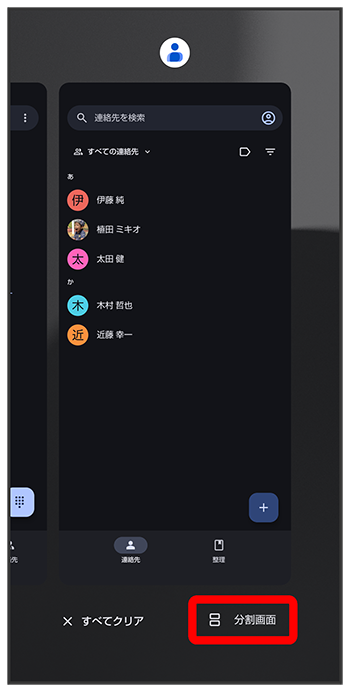 - アプリの使用履歴画面でアプリの履歴のアイコンをタップと操作しても画面を分割できます。