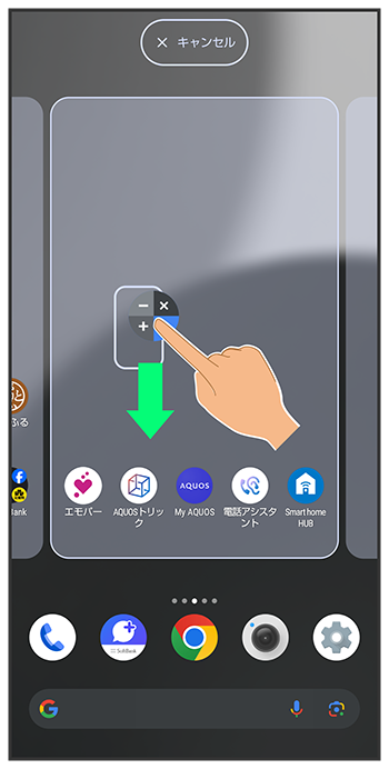 - 画面の端に表示されるシートまでドラッグすると、シートを切り替えて機能のショートカットを追加できます。一番右端のシートまでドラッグすると、シートを1枚増やして追加できます。