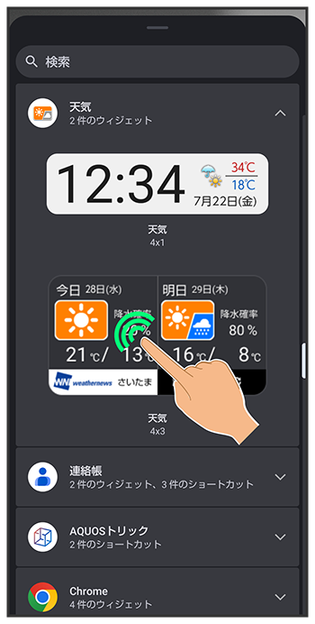 検索バーの下に、おすすめのウィジェットが表示されます。