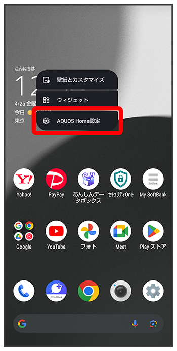 | Google アプリの表示 | ホーム画面の左側に、ニュースや天気などの情報を表示するかどうかを設定します。 |