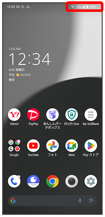 - お使いの端末画面上(画面上部)に待ち受け時は「5G」と表示されている場合でも、通信を行う際は表示が「4G」に切り替わり、4G通信が使用される場合があります。