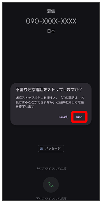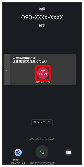 不明な相手の電話を「迷惑ストップ」ボタンでお断りする
