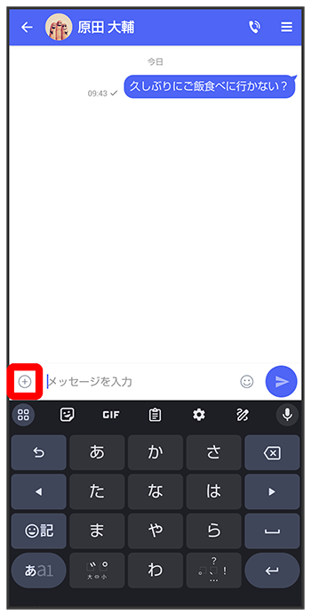 をタップすると位置情報が添付されたメッセージが送信されます。